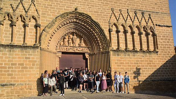 Imagen del grupo junto a la iglesia fortaleza de San Sarturnino de Artajona